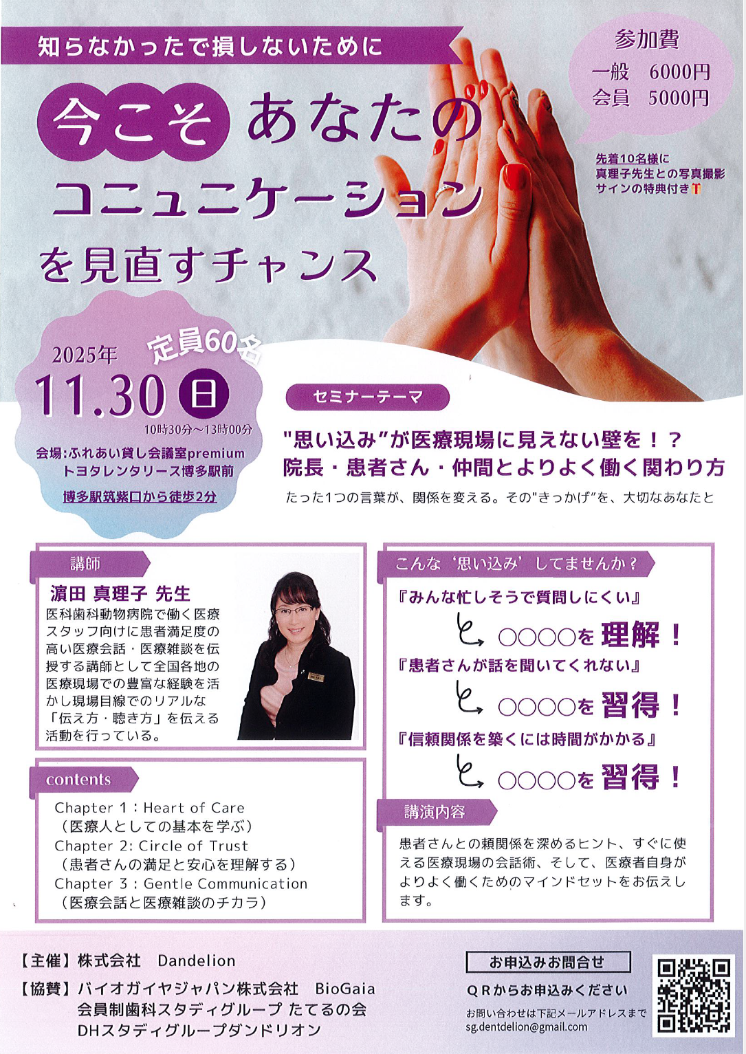 2025年11月30日 10:30~13:00 , 濵田 真理子 先生 :sg.dentdelion@gmail.com PDF